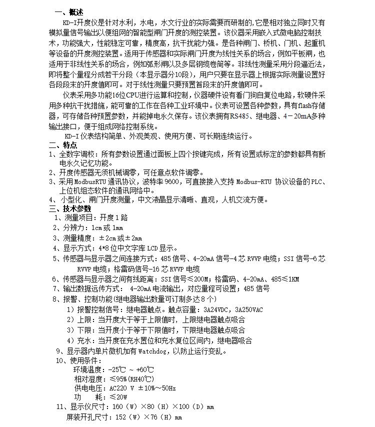 海河KD-I閘門開度儀是針對水利,水電,水文行業的實際需要而研制的,它是相對獨立同時又有模擬量信號輸出以便組網的智能型閘門開度的測控裝置。